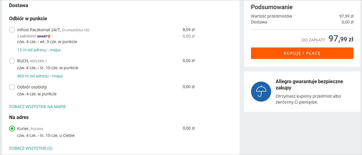 Dostawa z Allegro Smart. Paczka 24 Odbiór w Punkcie. Jak płacisz przy odbiorze np.